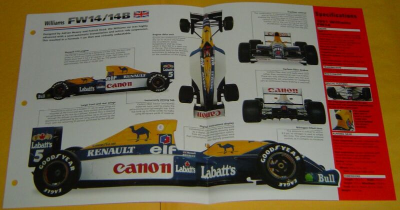 Title (ebay affiliate link): 1991 1992 Williams Grand Prix Engineering FW14/14B Race Car info/specs/photo