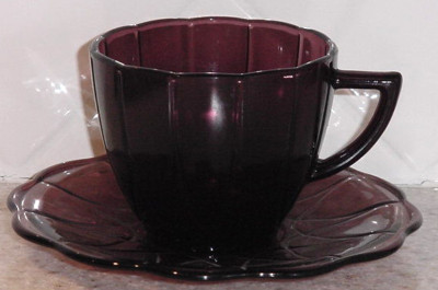 Hazel Atlas NEWPORT Amethyst Glass~Cup & Saucer