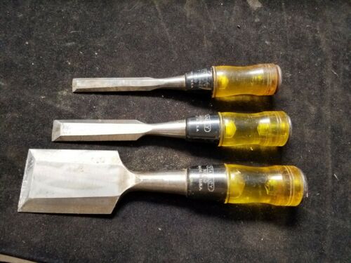 Title (ebay affiliate link): 3 Vintage Stanley No. 60 Wood Chisels w/ Strike Caps 2" / 3/4" / 1/2"