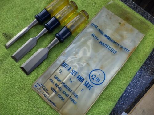 Title (ebay affiliate link): Vintage Bevel Edge Chisel Set sold by EJ Korvettes early 1960s unused in pouch