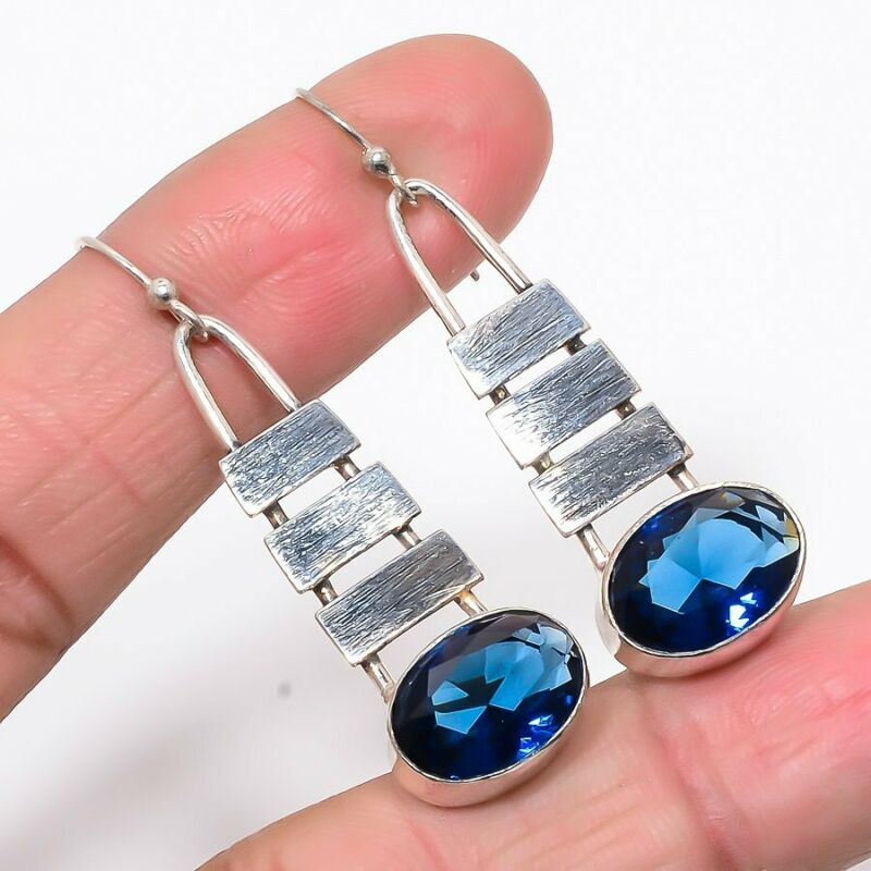 Title (ebay affiliate link): Matte Finish Blue Sapphire 925 Silver Jewelry Antique Look Earring 1.97"(18)