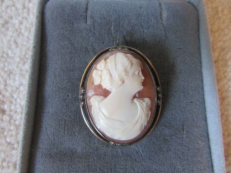 Title (ebay affiliate link): Antique Carved Shell Cameo Brooch Pin Pendant Framed Gorgeous
