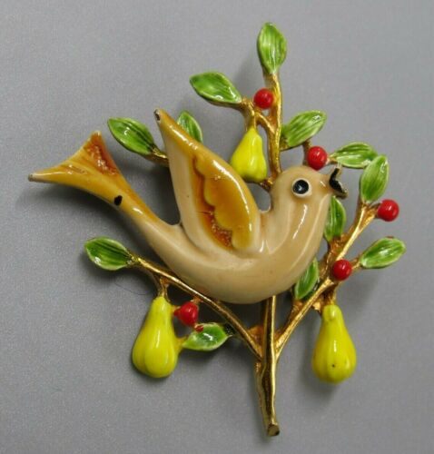GRANDMA''S ANTIQUE BROOCH Vintage Jewelry ART Patridge Tree PIN Rhinestone Lot G