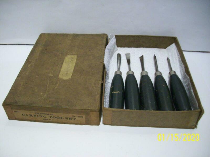 (5) Vtg SEARS CRAFTSMAN Set No. 2899 LEATHER / WOOD CARVING HAND TOOLS ~ USA ~