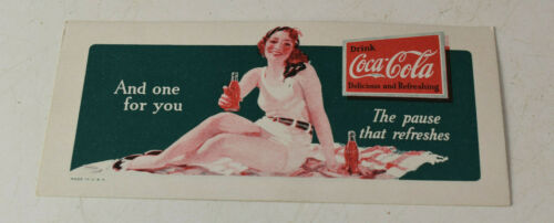 L95- 1930s Coca Cola Ink Blotter Original Women Advertising Sign Pin Up