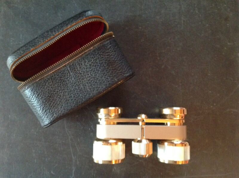 ANTIQUE VINTAGE BUSHNELL OPERA GLASSES BINOCULARS W/ CASE EXCELLENT SHAPE PEARL