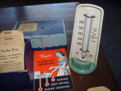 VIN TAYLOR OVEN THERMOMETER W/RECIPE BOX & PAPERWORK