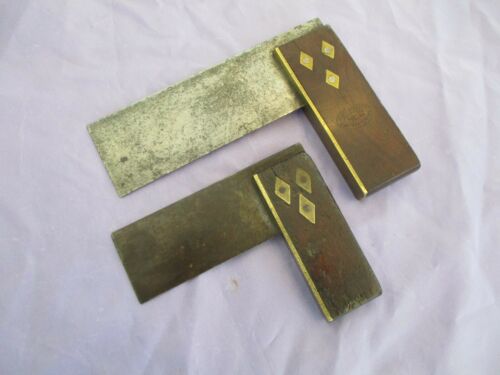 LOT OF 2 VINTAGE ANTIQUE ROSEWOOD & BRASS CARPENTER SQUARES - SHEFFIELD ENGLAND