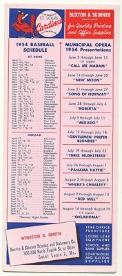 Baseball: 1954 Schedule for the St. Louis Cardinals