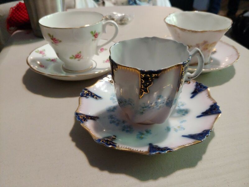 Set Lot Of 3- 2 antique Tea Cup & Saucers and vintage bone china england