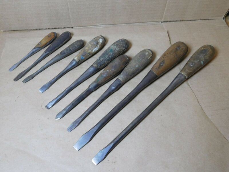Mixed lot vintage wood handled screwdrivers