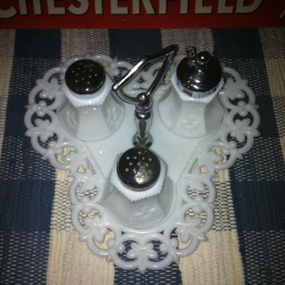 Set Of Milk Glass Salt & Pepper Shakers & Sugar Dish??