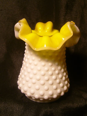 VINTAGE WHITE HOBNAIL CASED YELLOW MILK GLASS VASE