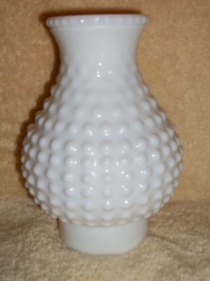 VINTAGE FENTON -WHITE HOBNAIL MILK GLASS OIL LAMP SHADE