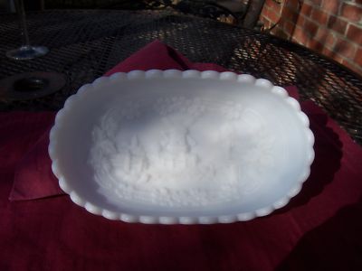 VTG IMPERIAL GLASS MILK WHITE DECORATED WINDMILL DISH