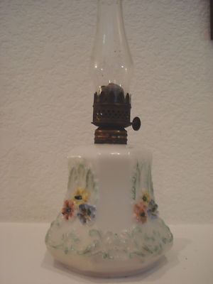 Vintage Pastel Floral Milk Glass Bedside Table Lamp*Oil