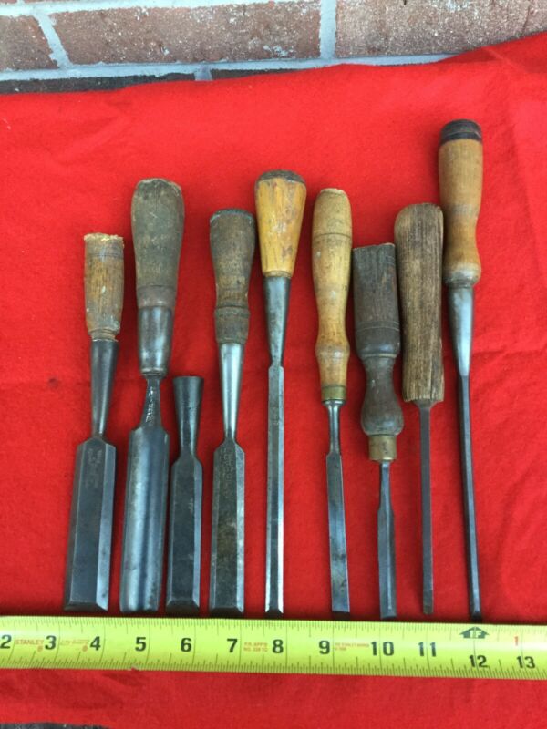 Title (ebay affiliate link): Vintage Lot of 9 Tang And Socket Chisels Good Condition