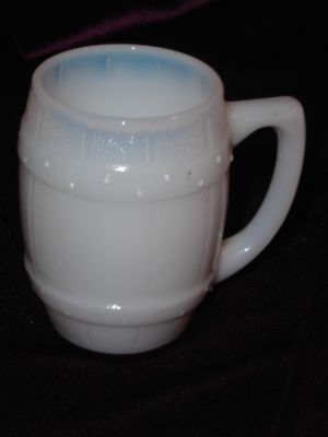 Old milk glass mug,barrel shaped,handle