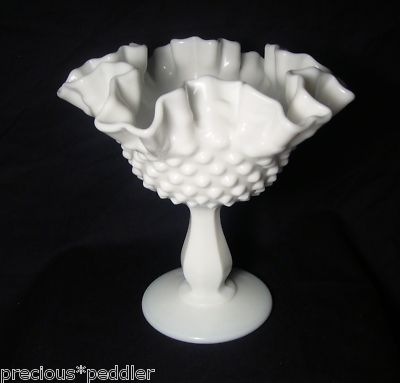 FENTON HOBNAIL MILK GLASS RUFFLED EDGE PEDESTAL COMPOTE
