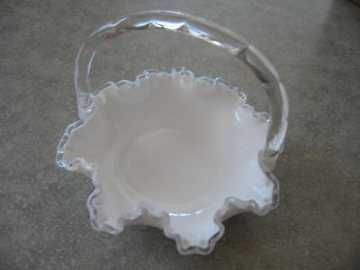 Vintage Fenton Milk Glass Candy Dish with Handle