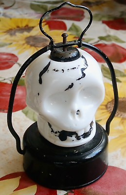 Vintage Halloween Milk Glass B.O. Skull Lantern RARE
