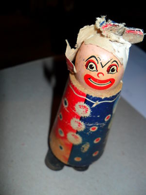 VINTAGE WOOD WALKING CLOWN TOY-WORKING