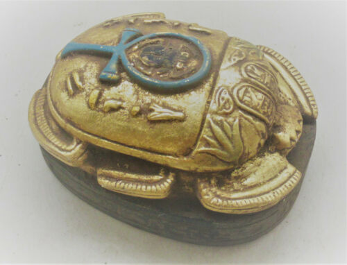 Title (ebay affiliate link): BEAUTIFUL ANCIENT EGYPTIAN STONE GOLD GILT SCARAB WITH HEIROGLYPHS