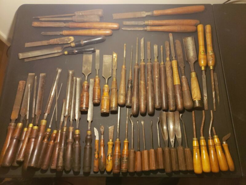 HUGE ANTIQUE CHISELS LOT!!! Acorn Sheffield England Buck WButcher Sweden Marples