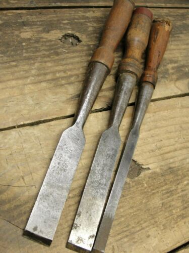 3 Antique Vintage New Haven Edge Tool Wood Chisel 3/8" 3/4" & 7/8"