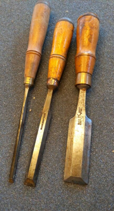 Title (ebay affiliate link): Vintage Lot of 3 BUCK BROS Beveled Edge Tang Fitted Chisels 1" 1/2" & 1/4" USA
