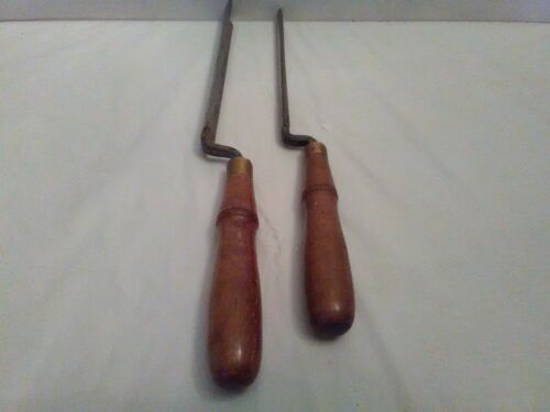 2 Vintage Buck Bros. 1/2" & 1" Wide -Crook Neck Wood Carving Gouge Chisels- USA