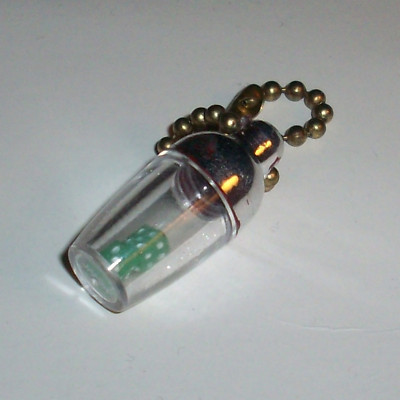 VINTAGE MINI DICE KEYCHAIN DICE IN JAR 1950'S GREENDICE