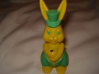 TOY PLASTIC BUNNY RABBIT VINT 50-60s GRN & YELL Easter
