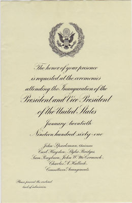 Title (ebay affiliate link): 1961 KENNEDY CONGRESSIONAL INAUGURAL INVITATION W/ENV.