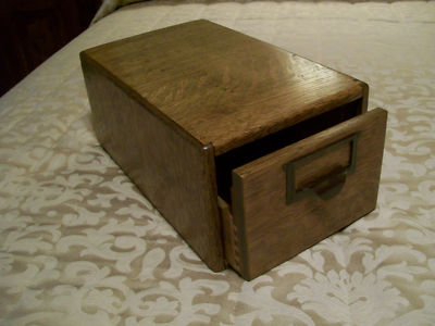 Title (ebay affiliate link): Antique Oak Library Index Card Catalog Filling File Box