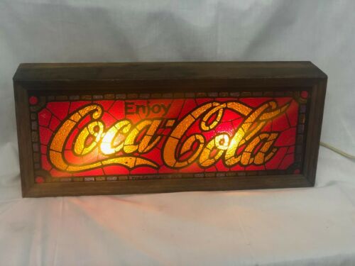 Title (ebay affiliate link): Vintage Coca Cola Lighted Faux Stained Glass Style Sign