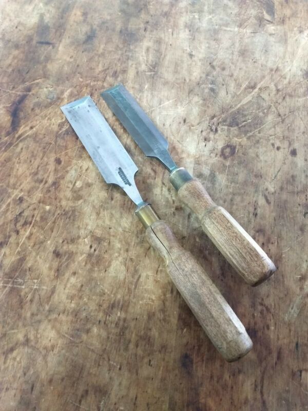 Early 1-1/4 & 1-1/2" Carrick & Craig Glasgow Chisels OCT WOOD HANDLE Boxwood?