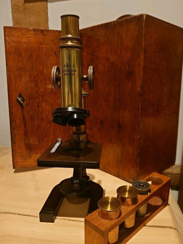 Title (ebay affiliate link): Antique Brass Ross Of London Microscope With Box & Lenses