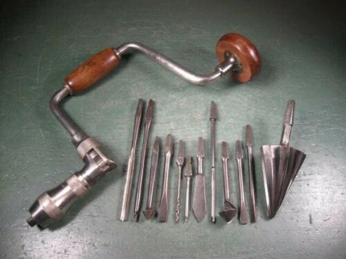 Title (ebay affiliate link): OLD USED VINTAGE STANLEY WOODWORKING TOOLS BIT BRACE W/ BITS GROUP