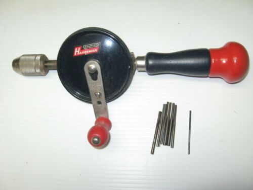Vintage Stanley Handyman No.1220 Hand Drill with 8 Bits - USA - VERY NICE