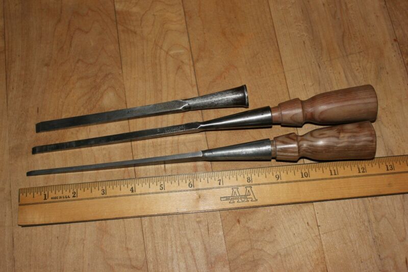 Title (ebay affiliate link): Set of Mortice Chisels, 1 T. S. Witherby and two others 1/16", 1/4", 3/16"
