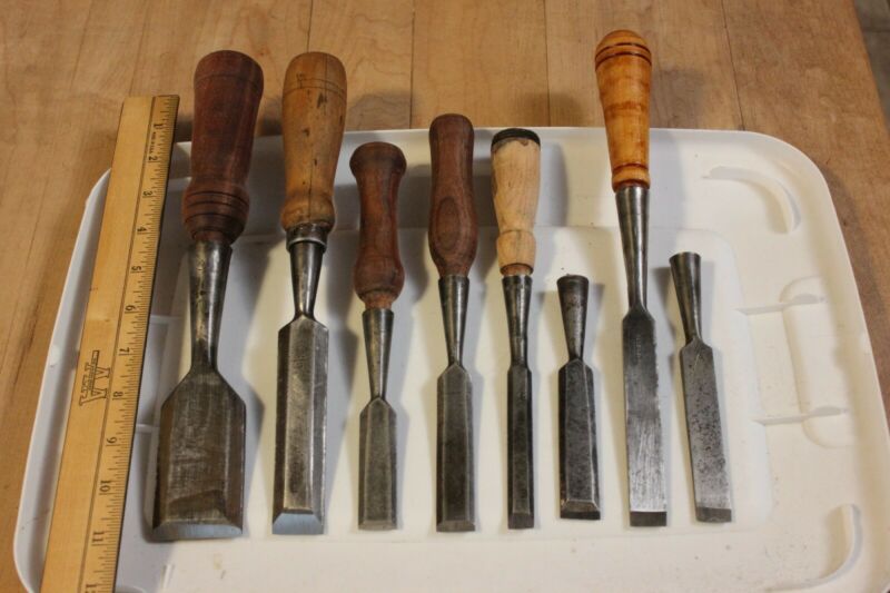 Title (ebay affiliate link): Vintage Woodworking Chisels Lot of (8) Bevel Edge and Firmer Chisels