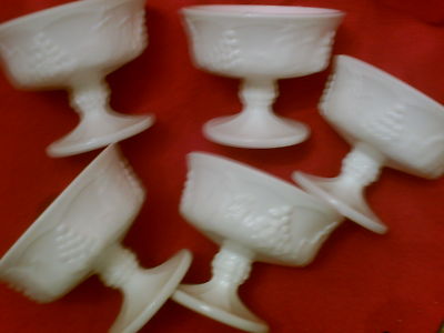 MILK GLASS GRAPE VINE DESSERT SHERBERT FOOTED DISH FIVE
