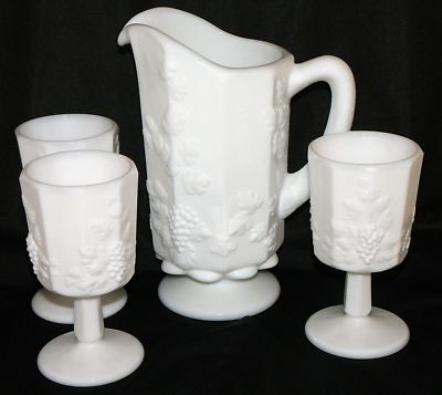 Westmoreland Milk Glass Paneled Grapes Pitcher Goblet