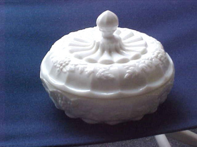 VTG. WHITE MILK GLASS COVERED DISH-WESTMORELAND-GRAPES