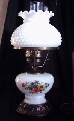 VINTAGE MILK GLASS TABLE KEROSENE OIL LAMP L@@K ELC.