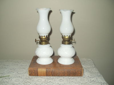 Vintage Miniature Hobnail Milk Glass Kerosene Oil Lamp