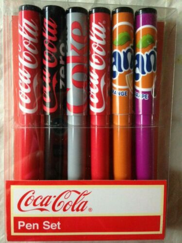 Title (ebay affiliate link): NEW! Coca Cola Pen Set Six Fanta/Coke/Diet Coke/Coke Zero Blue Ink Pens w/ Clips