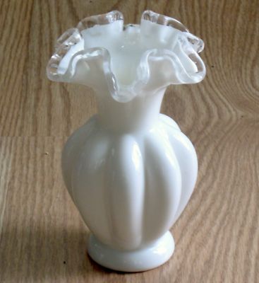 white milk glass FENTON SILVER CREST fluted melon vase