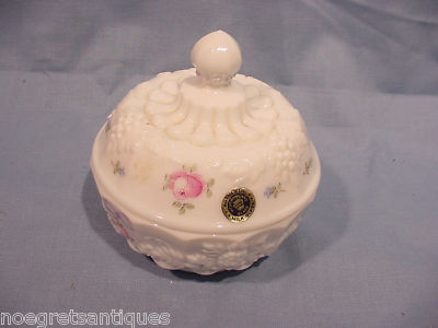 Westmoreland Milk Glass & Flower Powder Jar Candy Dish